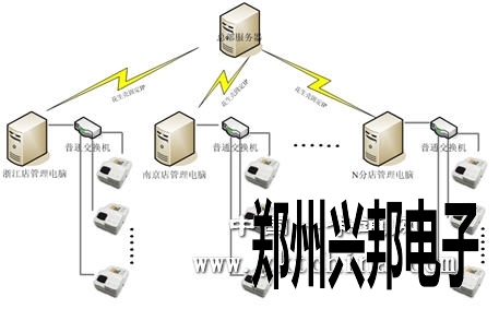 如上圖所示,整個(gè)系統(tǒng)的管理電腦單獨(dú)存在,在剛開始建設(shè)時(shí)就把各個(gè)分店的電腦數(shù)據(jù)庫單獨(dú)建立,制作卡片時(shí),通過卡片的號(hào)碼段位來區(qū)分各店的范圍,只是在需要傳輸數(shù)據(jù)時(shí),通過花生殼軟件等工具綁定IP地址,使各家分店和總部服務(wù)器之間的通訊無地理的局限,實(shí)現(xiàn)整個(gè)系統(tǒng)數(shù)據(jù)的實(shí)時(shí)交換。